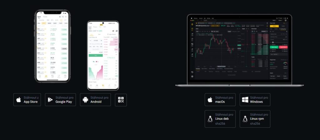 Binance umožňuje obchodovat ve vlastní mobilní aplikaci, webovém prohlížeči a desktopové aplikaci.